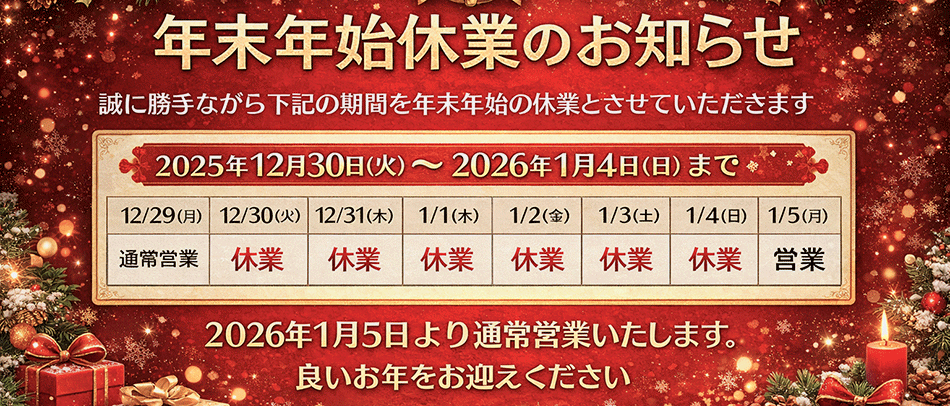 2025年9月~2025年11月の営業カレンダーを更新いたしました。