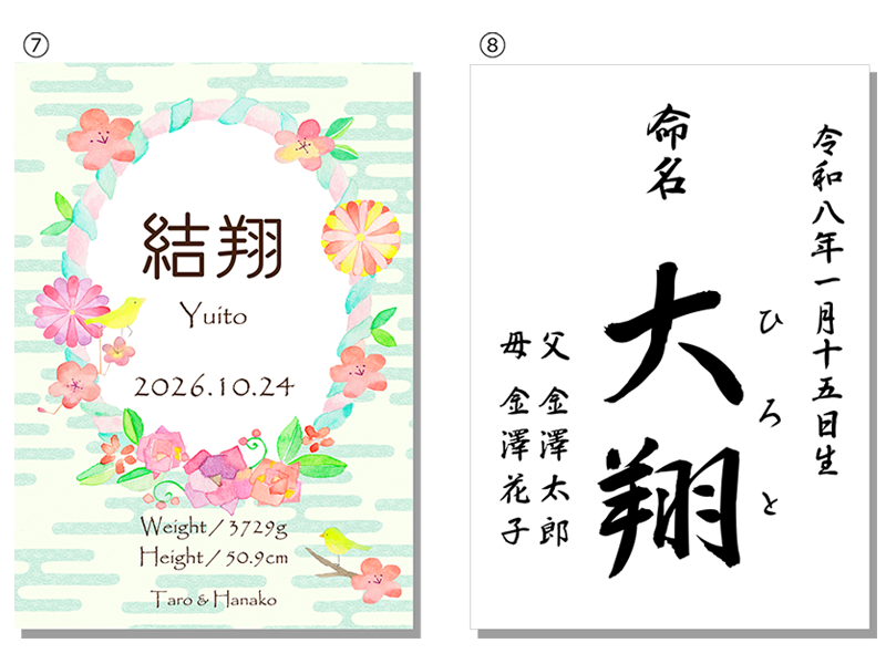 赤ちゃんの命名書をお作りいたします